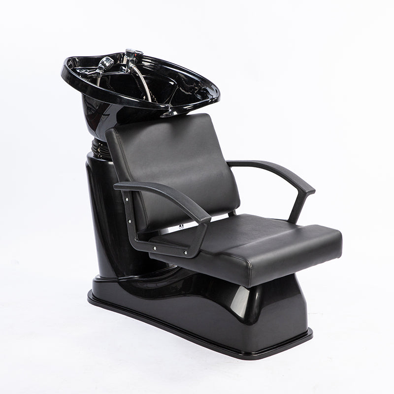 The unit is equipped with a tilting ceramic basin that can be adjusted to accommodate different body types and seating positions. This ergonomic feature provides proper neck support and enhances client comfort during shampoo sessions.