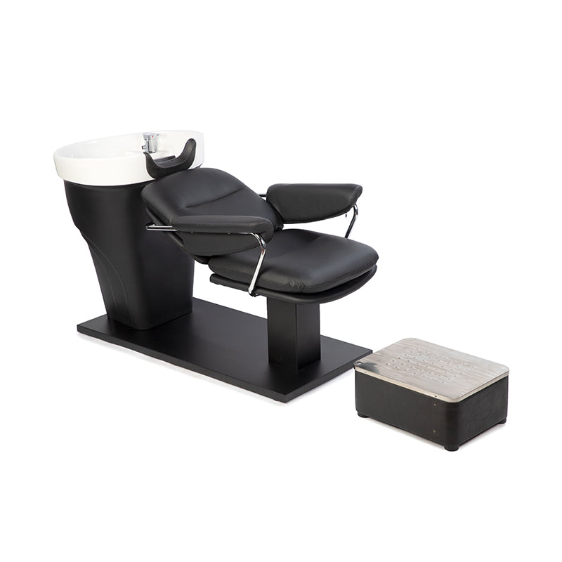 The shampoo system features a timeless design that seamlessly blends classic aesthetics with a modern touch. The black ceramic bowl and sleek lines create a cohesive and sophisticated look, enhancing the overall ambiance of your salon.