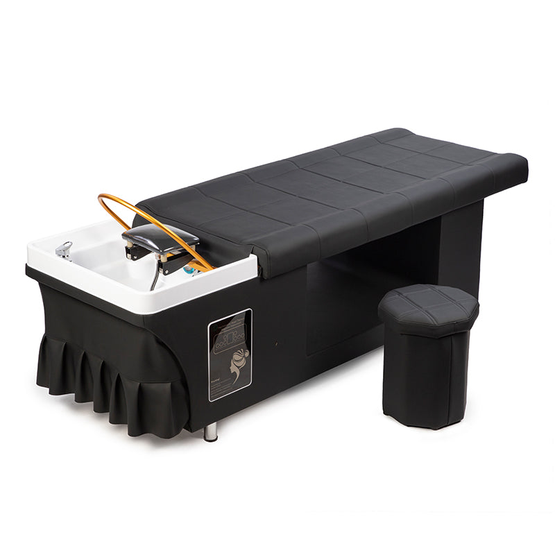 Elevate your salon experience with the perfect balance of relaxation,durability,and functionality.a Gold Ring.Water Halo-a rotatable arch with many water outlets that ensures targeted water flow across the scalp for a soothing and effective wash.The shampoo bowl is made of high-quality porcelain,offering superior durability and a sleek professional finish.
